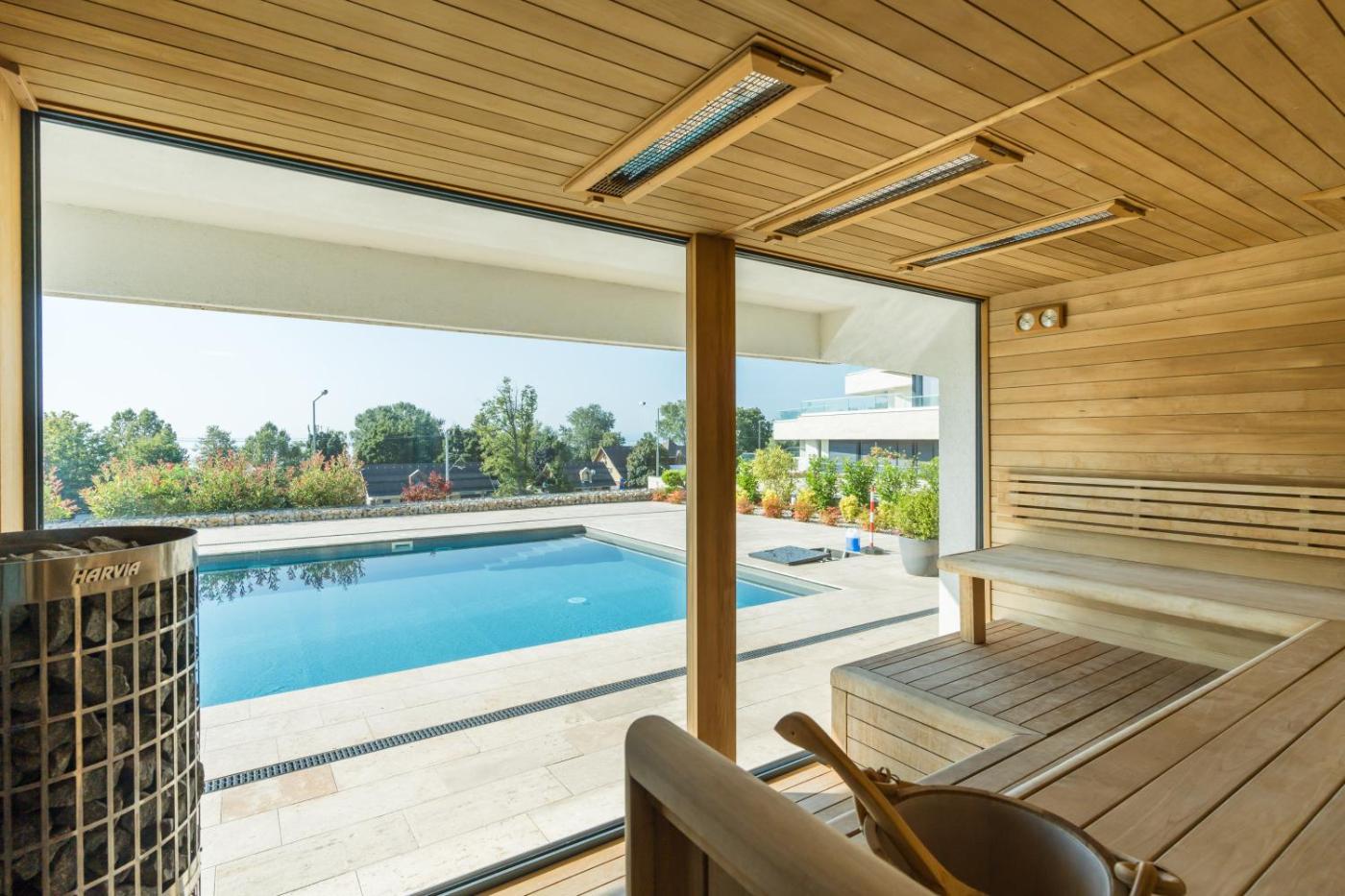 Apartment with Lake View. This apartments standout features are the pool with a view and sauna. This apartment includes 1 living room, 2 separate bedrooms and 1 bathroom with a walk-in shower and free toiletries. The fully equipped kitchen has a stovetop, a refrigerator, a dishwasher and kitchenware. The air-conditioned apartment offers a flat-screen TV with cable channels, a washing machine, soundproof walls, a tea and coffee maker as well as lake views. The unit has 3 beds.