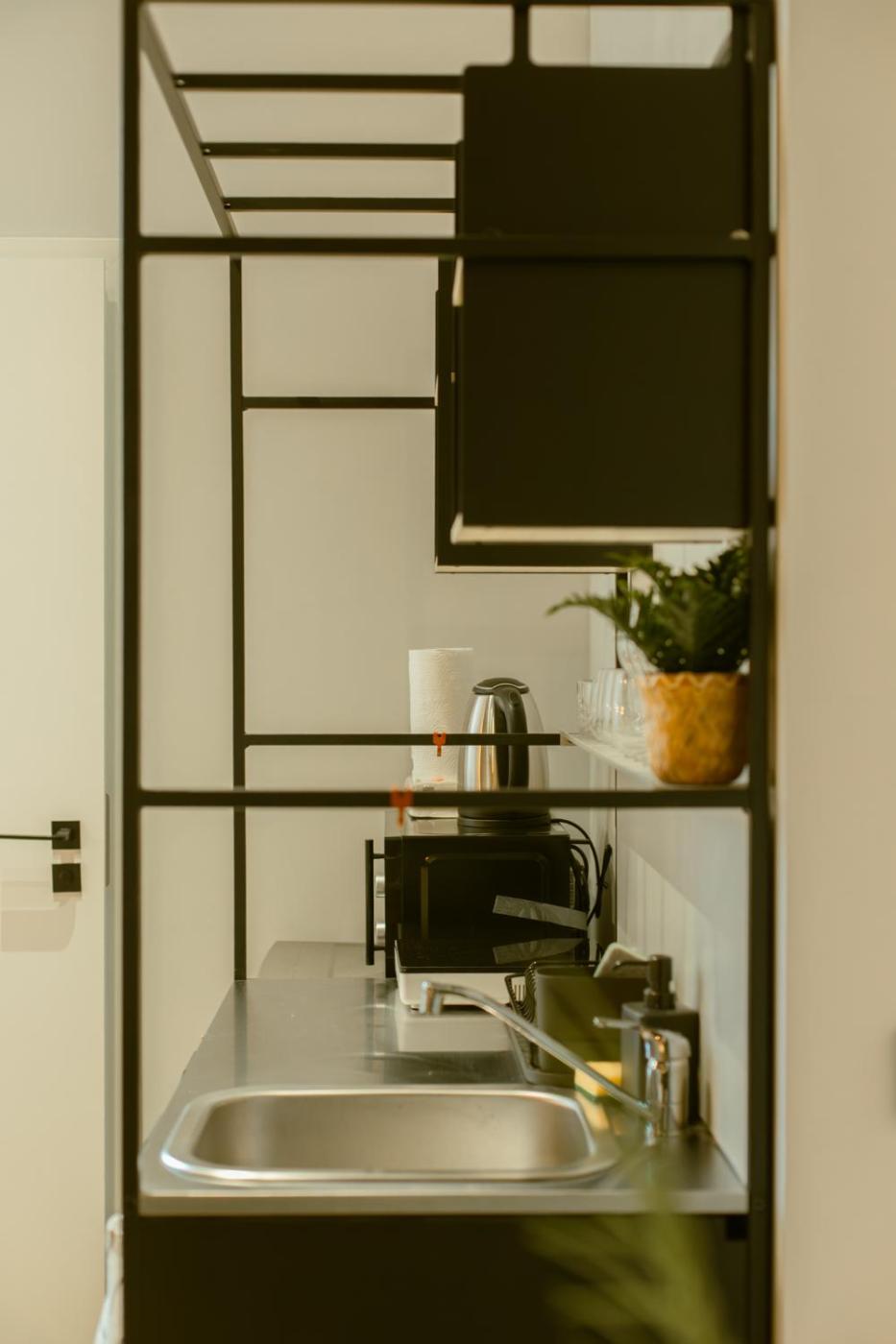 Queen Studio. The studio provides air conditioning, a tea and coffee maker, as well as a private bathroom featuring a walk-in shower and a hairdryer. Meals can be prepared in the well-fitted kitchen, which is equipped with a stovetop, a refrigerator, kitchenware and a microwave. The studio offers a flat-screen TV, a seating area, a dining area, heating as well as ancourtyard view. The unit offers 1 bed. ;