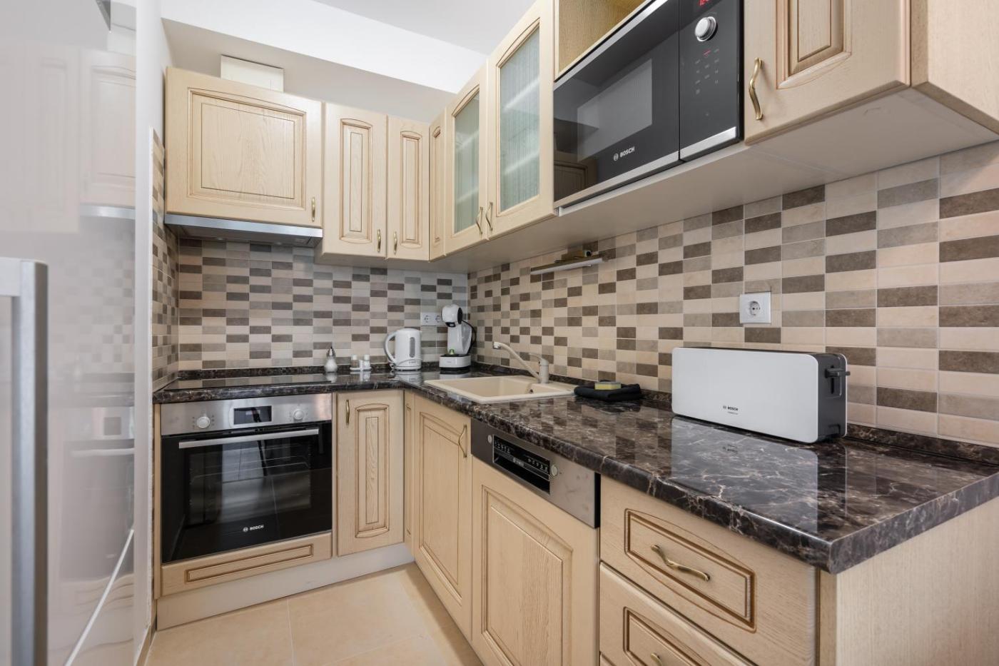 One-Bedroom Apartment. This air-conditioned apartment comes with 1 living room, 1 separate bedroom and 1 bathroom with a hairdryer. In the well-fitted kitchen, guests will find a refrigerator, a dishwasher, an oven and a microwave. This apartment has a washing machine, heating and a flat-screen TV. The unit has 1 bed.