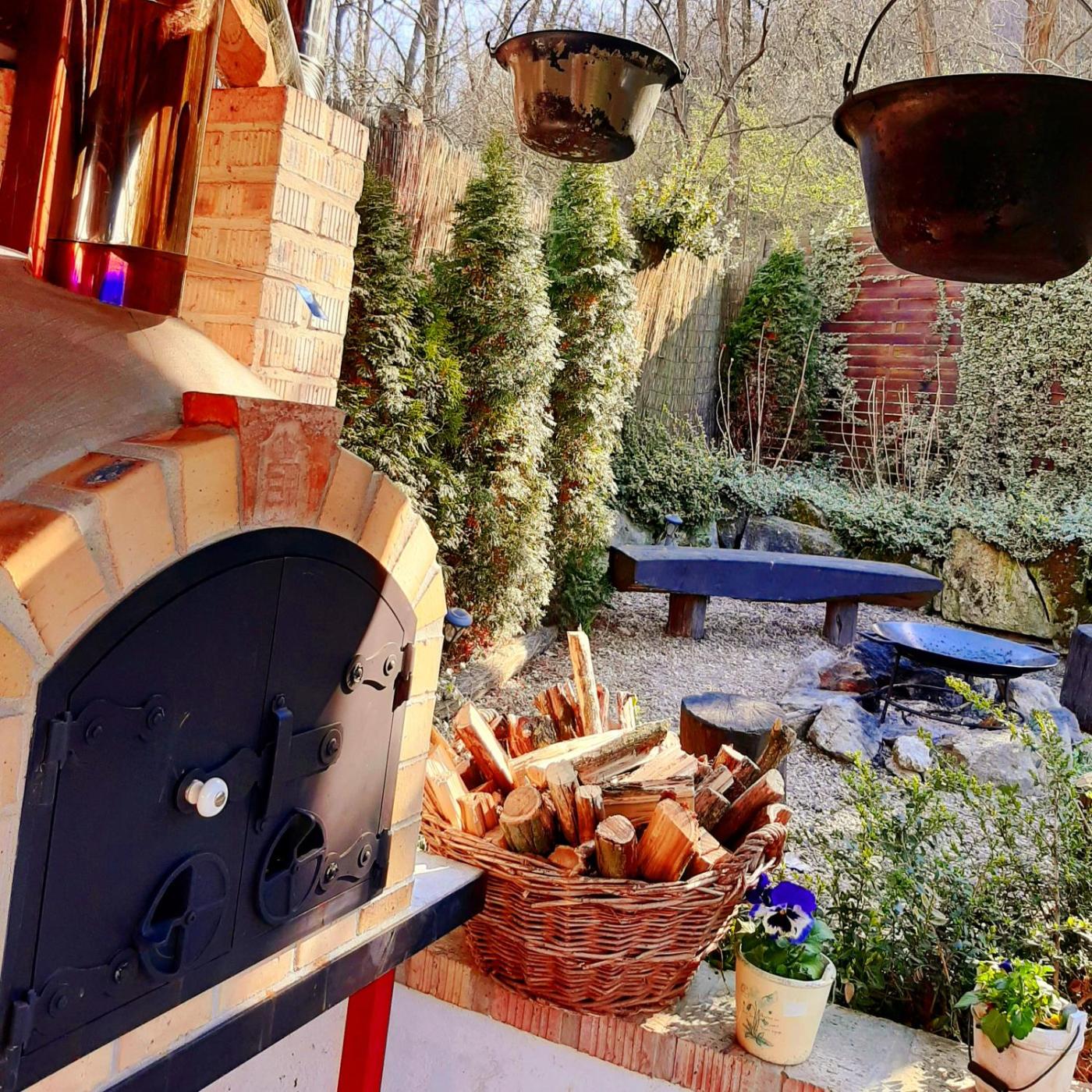 For guests with children, the apartment provides outdoor play equipment. Guests can also warm themselves near outdoor fireplace after a day of cycling.