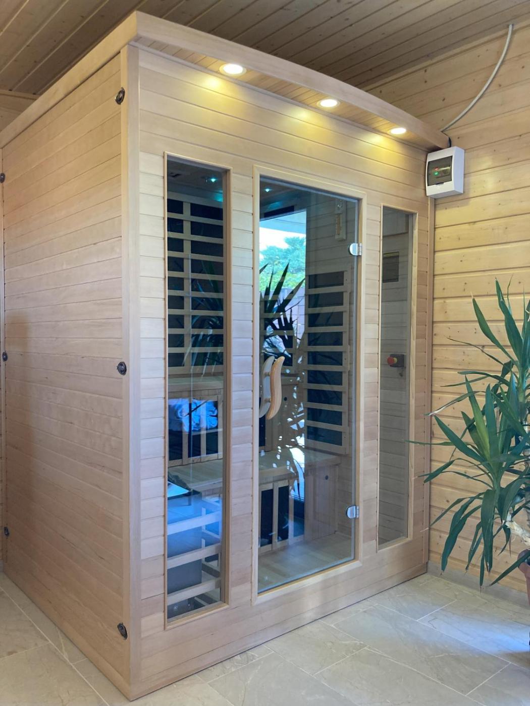 Two-Bedroom House. This holiday homes standout features are the hot tub and sauna. Guests will find a stovetop, a refrigerator, kitchenware and an oven in the kitchen. The holiday home also has a barbecue. The air-conditioned holiday home offers a flat-screen TV with cable channels, a washing machine, a private entrance, a tea and coffee maker as well as garden views. The unit offers 5 beds.
