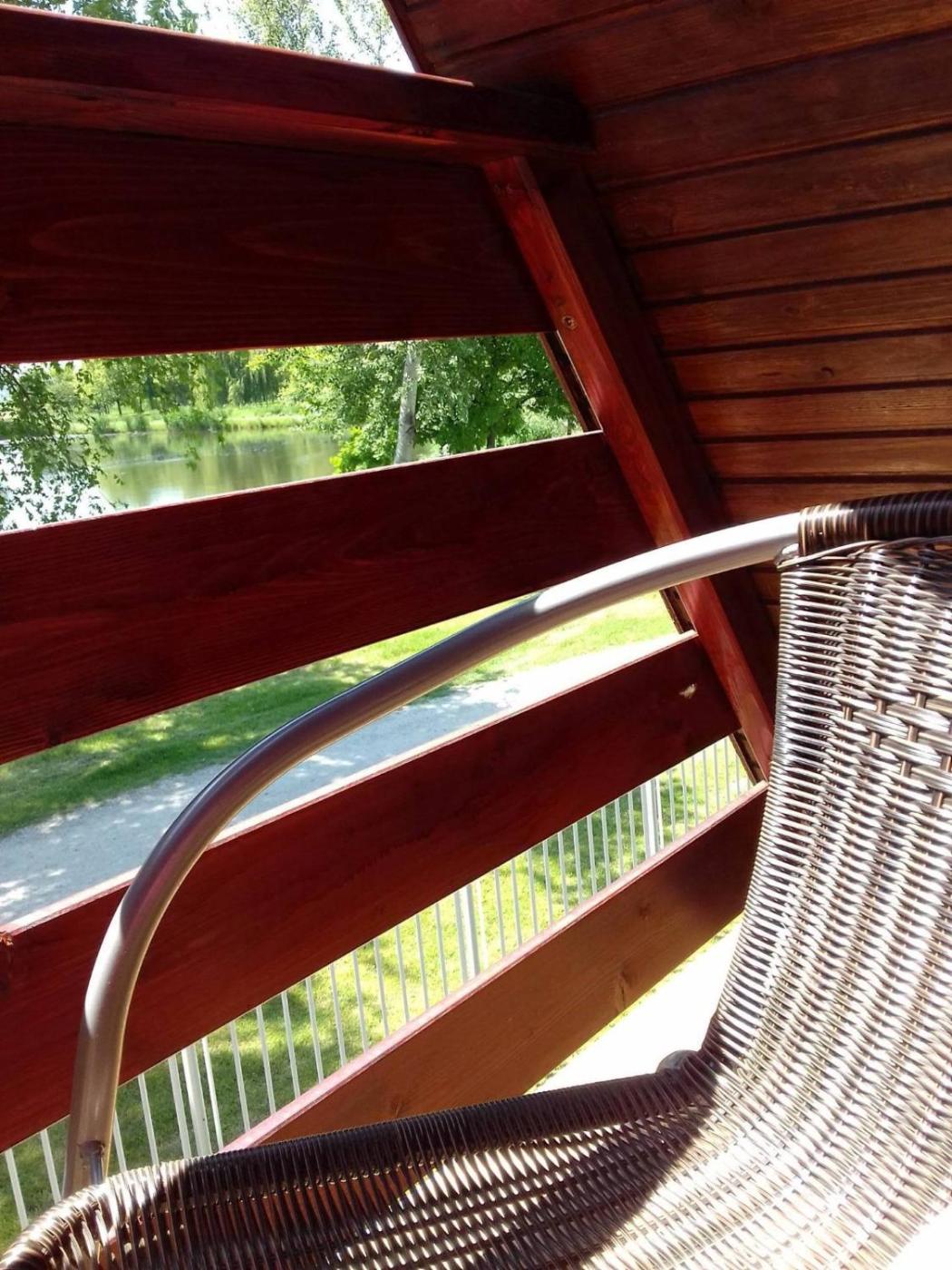 The holiday home with a terrace and lake views features 1 bedroom, a living room, a flat-screen TV, an equipped kitchenette with a microwave and a fridge, and 1 bathroom with a walk-in shower. Towels and bed linen are featured in the holiday home. The property has an outdoor dining area.