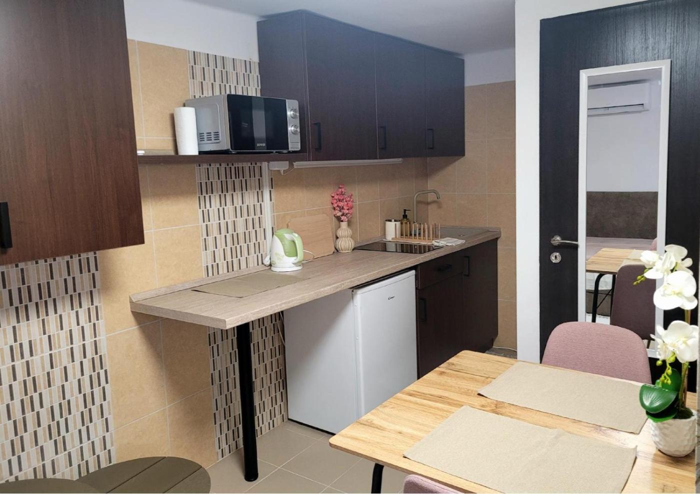 One-Bedroom Apartment. Boasting a private entrance, this air-conditioned apartment features a kitchen, 1 bedroom and 1 bathroom with a bath or a shower and a hairdryer. In the well-fitted kitchen, guests will find a stovetop, a refrigerator, kitchenware and a microwave. This apartment has a tea and coffee maker, a dining area, a flat-screen TV with streaming services and a terrace. The unit has 1 bed.