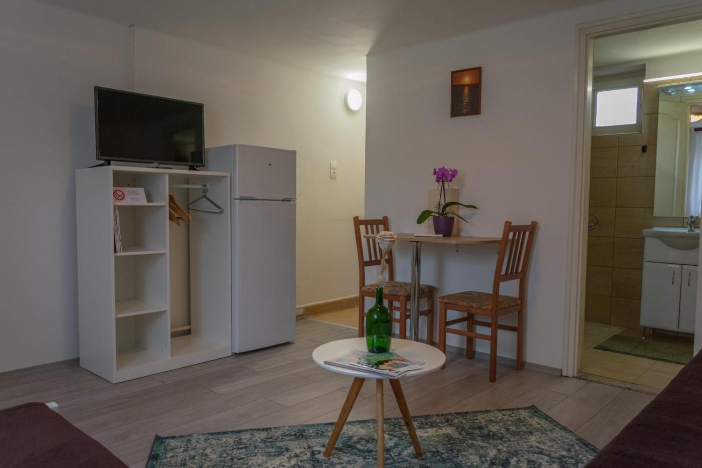 Standard Double or Twin Room. The twindouble room features parquet floors, a tiled floor, as well as a private bathroom boasting a shower and a hairdryer. In the well-equipped kitchenette, guests will find a stovetop, a refrigerator, kitchenware and a microwave. The spacious twindouble room offers a flat-screen TV with cable channels, a private entrance, a wardrobe, an electric kettle as well as garden views. The unit has 2 beds.