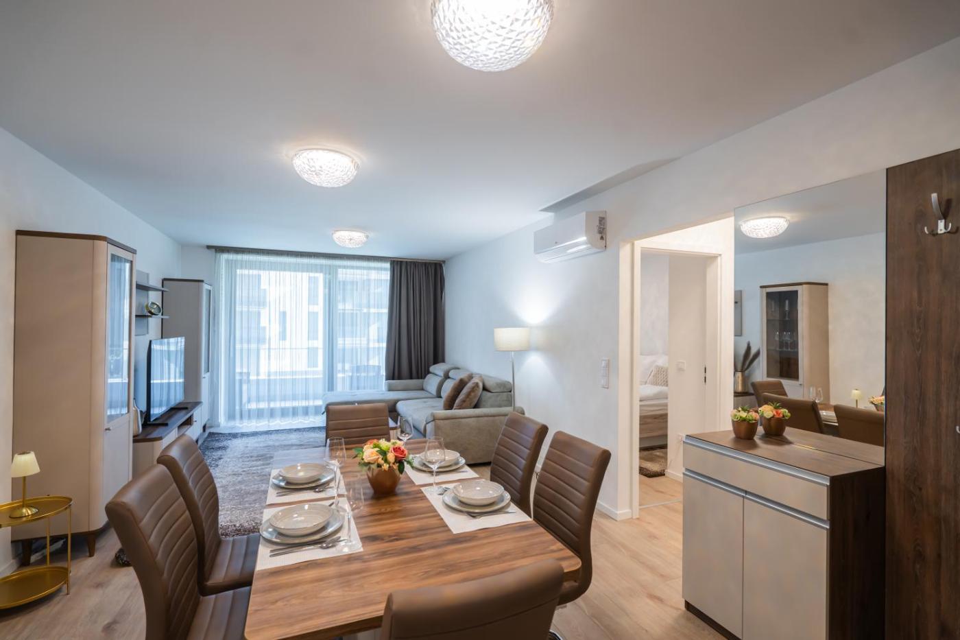 The apartment with a balcony and lake views has 1 bedroom, a living room, a flat-screen TV, an equipped kitchen with a dishwasher and an oven, and 1 bathroom with a shower. Towels and bed linen are offered in the apartment. For added privacy, the accommodation has a private entrance and soundproofing.