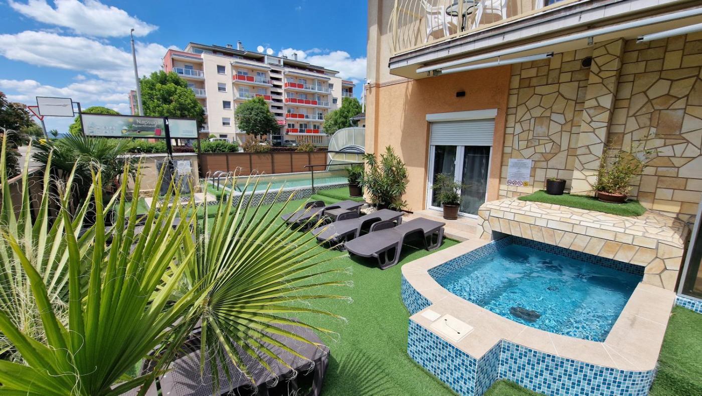 Located within 100 metres of Siofok Aranypart Beaches and 400 metres of Bebo Aquapark, Napsugár Apartmanház features rooms with air conditioning and a private bathroom in Siófok. This beachfront property offers access to a patio. The accommodation provides a hot tub, free WiFi throughout the property and family rooms.