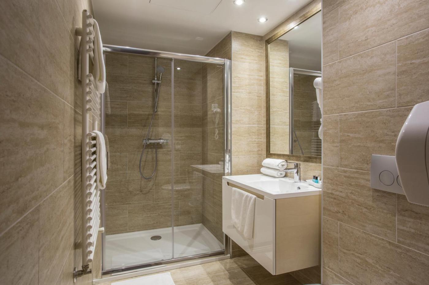 Comfort Double or Twin Room. Modern, air-conditioned rooms with city views, a flat-screen TV with satellite channels, a minibar (consumation is extra), and a bathroom with shower. A hairdryer, free toiletries, and bathrobes are also available. Notrooms in this category have an inner-city view, some rooms face the street behind the hotel. ;