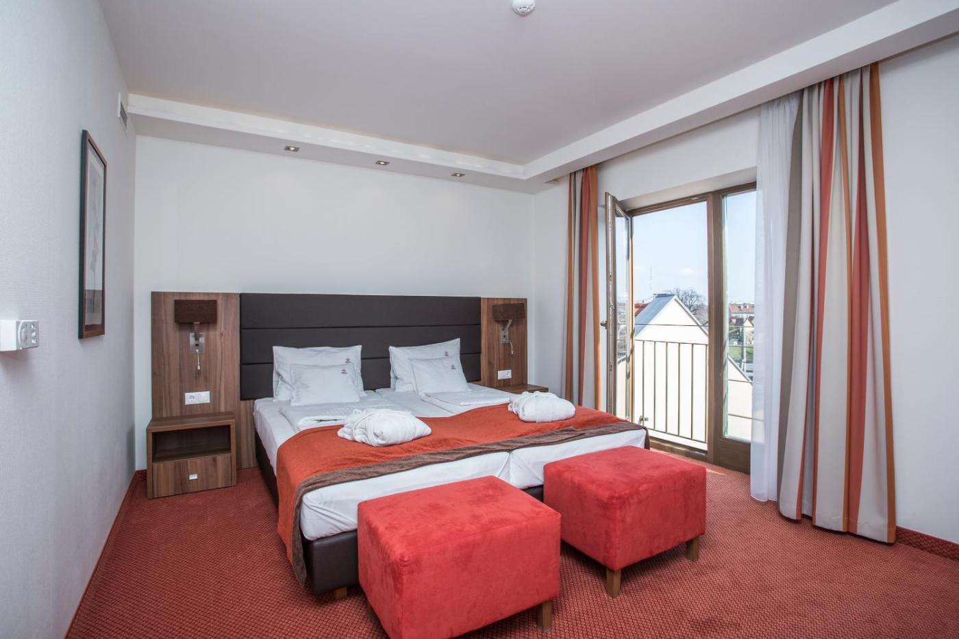 Deluxe Junior Suite. Modern, air-conditioned unit with a 40” LCD flat-screen TV with satellite channels, a minibar (consumation is extra) and a bathroom. Nespresso coffee machine with the capsules are provided. The room features a view to the Bükkös steam and thetown for our guests. ;